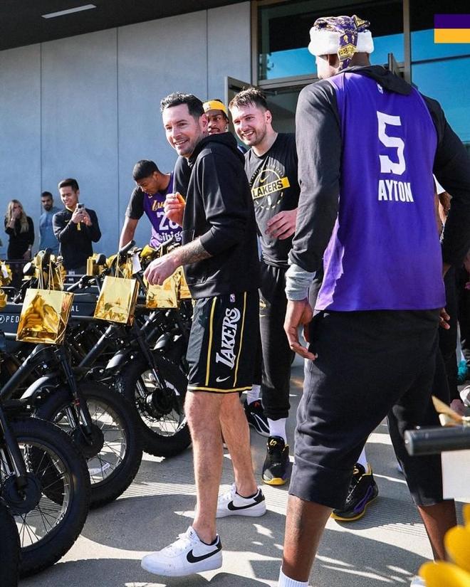 北京时间12月17日,湖人官方晒照,卢卡-东契奇为湖人全队准备了圣诞礼物,是100多辆E-bike电动自行车。